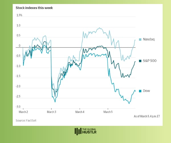 The S&P 500 dropped about 2%, the Dow fell roughly 3%, and the Nasdaq lost around 1–2%.