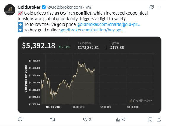 Gold already shows upward momentum in conflict headlines.